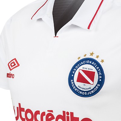 La camiseta, blanca con vivos rojos y galones con el doble diamante de umbro repetido sobre las mangas, busca recordar al recordado modelo adidas con el logo de 7 up que argentinos lució en el partido de desempate ante américa de cali.